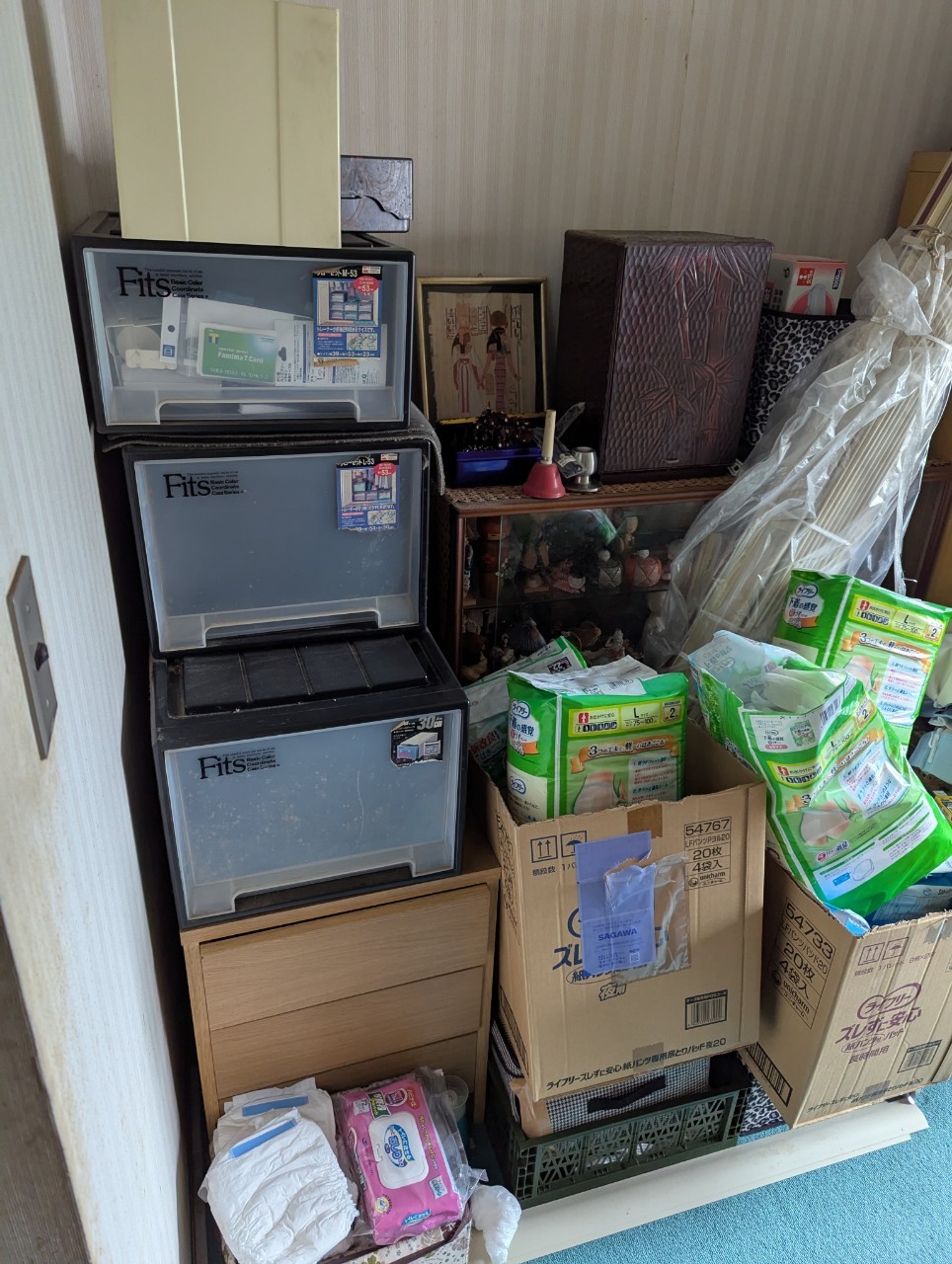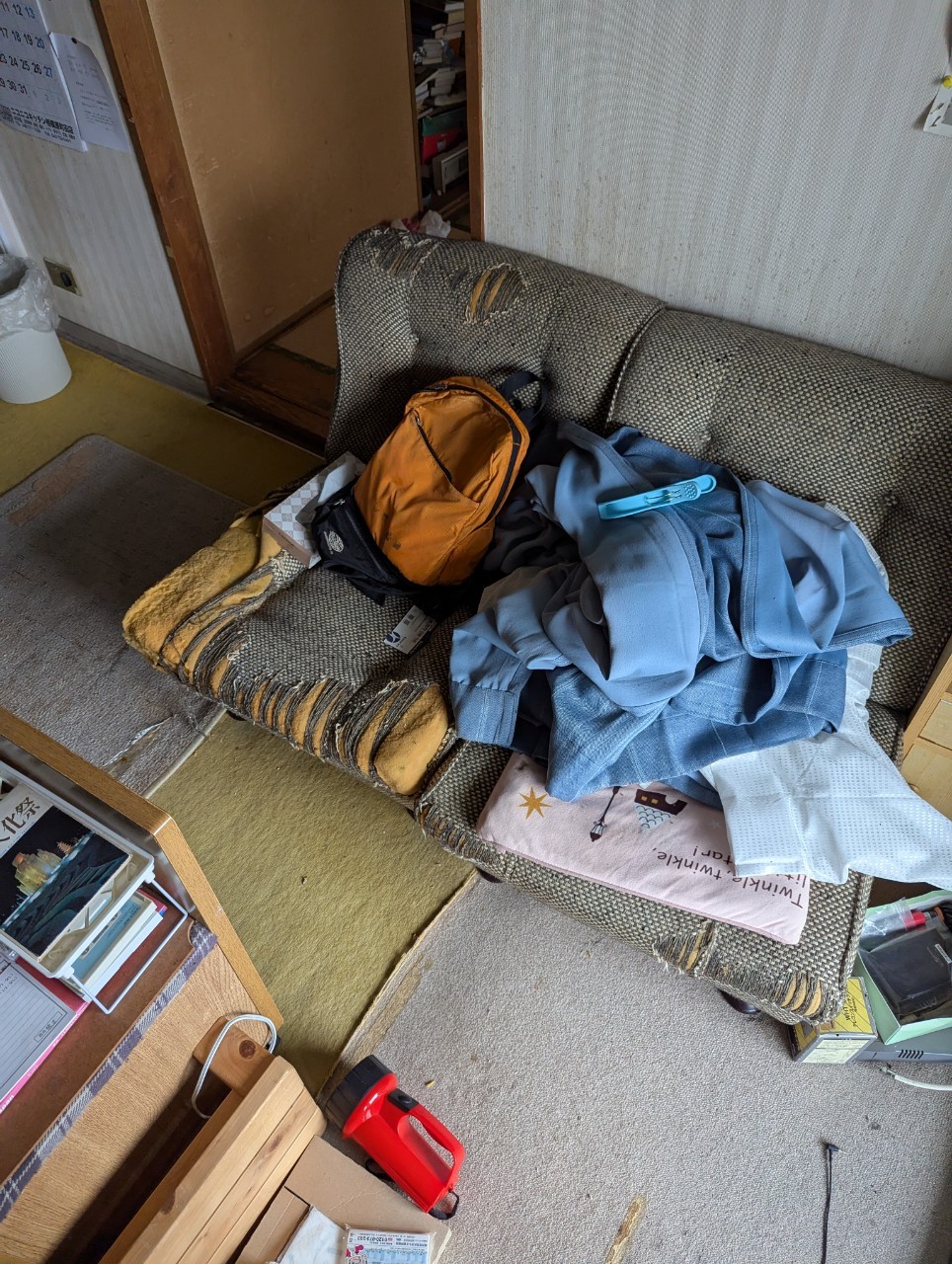 初日はスタッフ4名でお伺いし、室内の不用品を種類ごとに分別・仕分けいたしました。